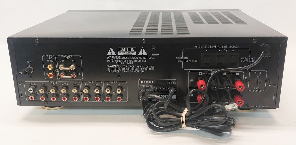 Le Denon - PMA 590 est un amplificateur stéréo intégré avec une puissance de sortie de 70 watts par canal. Fabriqué au Japon en 1990.