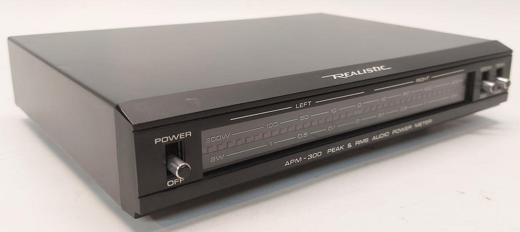 Le Realistic - APM 300 est un mesureur de puissance audio stéréo conçu pour mesurer et afficher la puissance de sortie crête et RMS de 2 W à 200 W. Fabriqué dans les années 1980s.