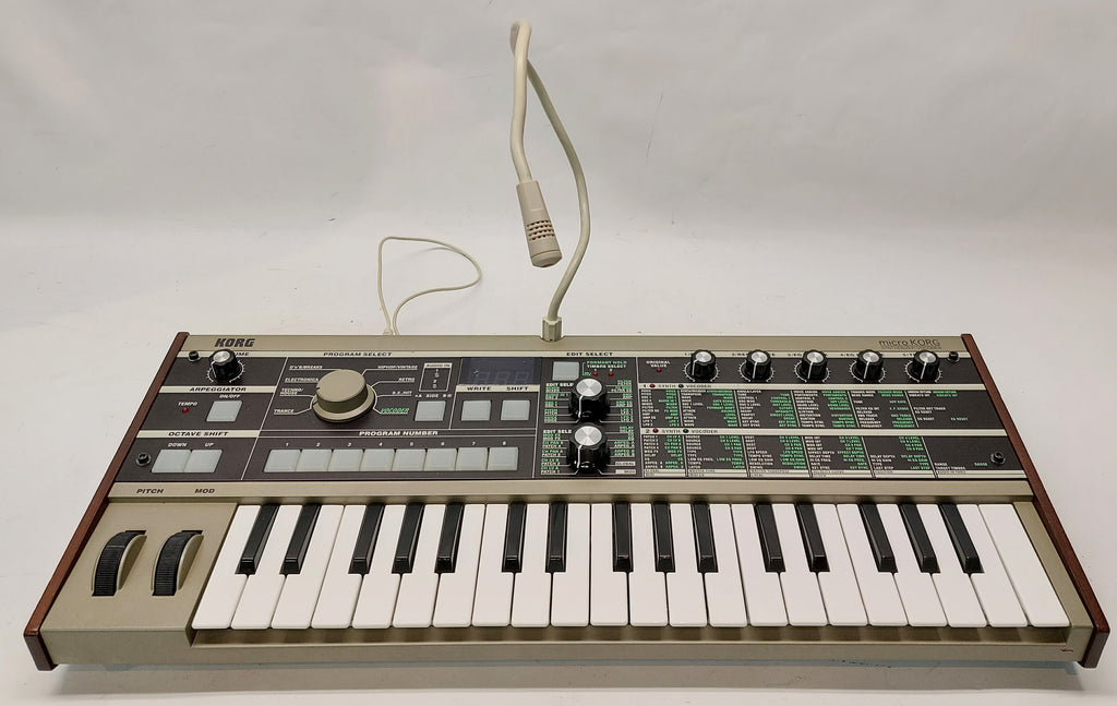 Le Korg - microKORG est un synthétiseur digital compact à modélisation analogique à 37 touches et vocodeur. Fabriqué en 2002.