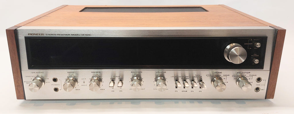 Le Pioneer - SX 828 est un récepteur AM/FM avec une puissance de 55 watts par canal doté d'une conception de circuit avancée et d'une sélectivité et d'une sensibilité FM exceptionnelles. Fabriqué au Japon en 1972-74.