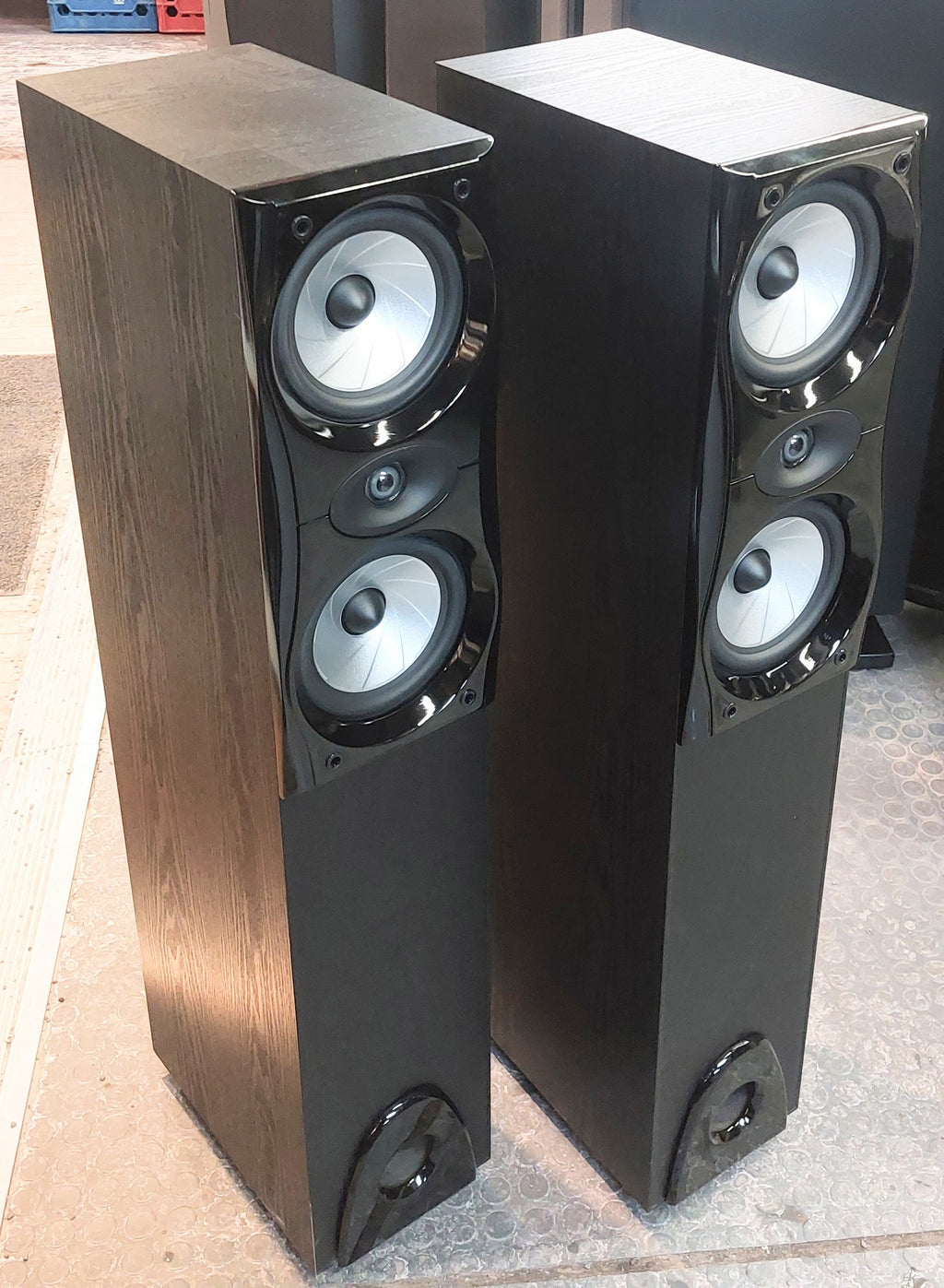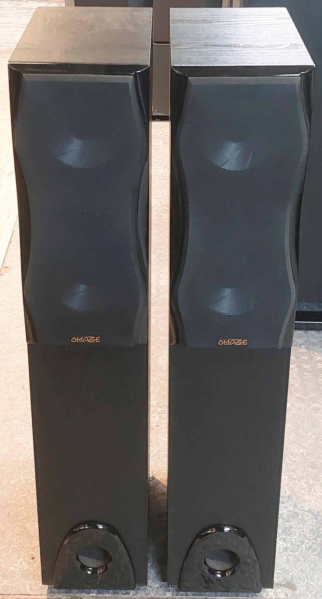 Les Omage QR-T6 sont des enceintes colonnes bass-reflex à 2 voies avec une puissance admissible de 20 à 125 watts et des pieds à pointes réglables.