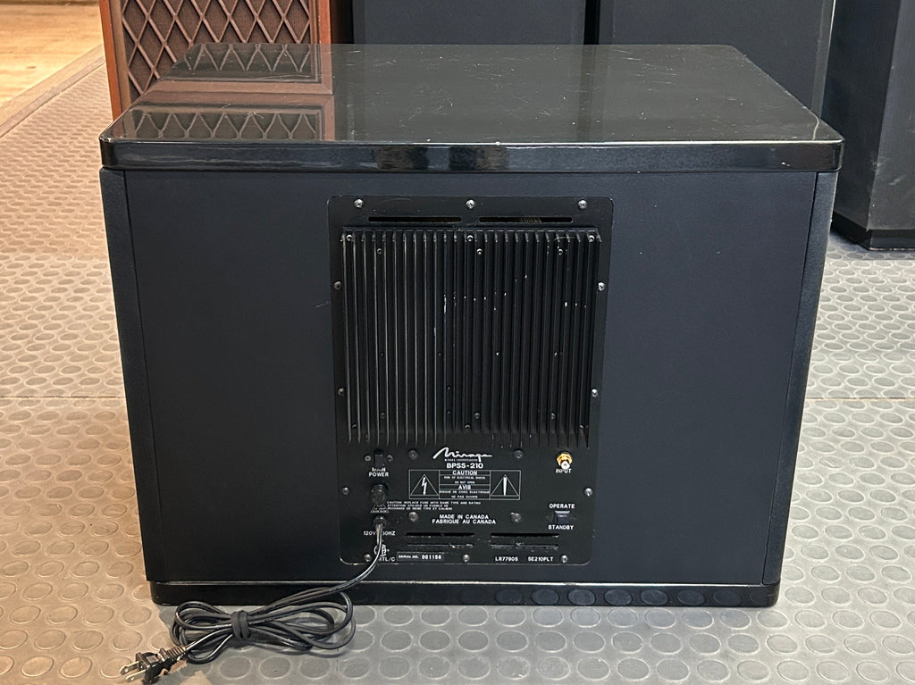 Le Mirage - BPS S210 possède un amplificateur de puissance de 250 watts RMS. Les dimensions du subwoofer sont de 18 pouces de haut par 23 pouces de large par 18 pouces de profondeur, et son poids est de 94 livres.
