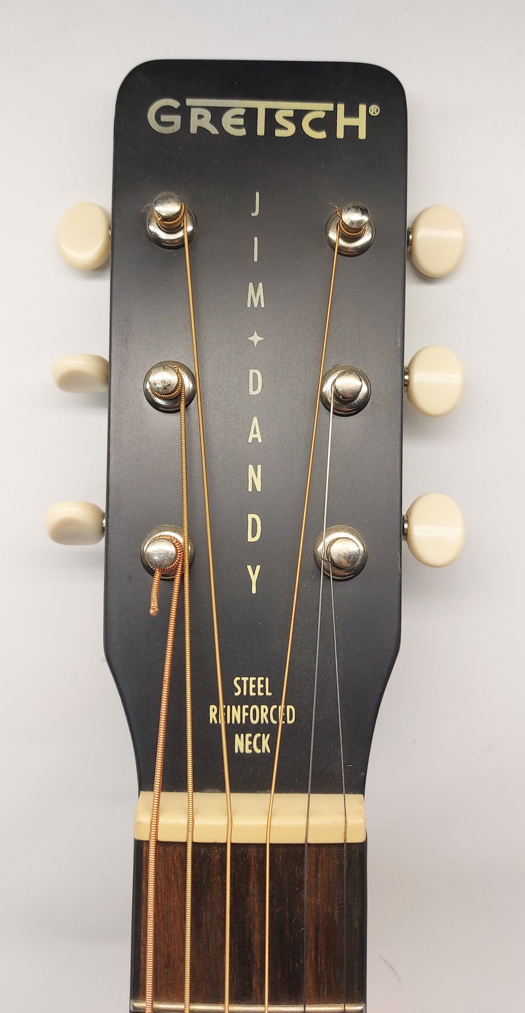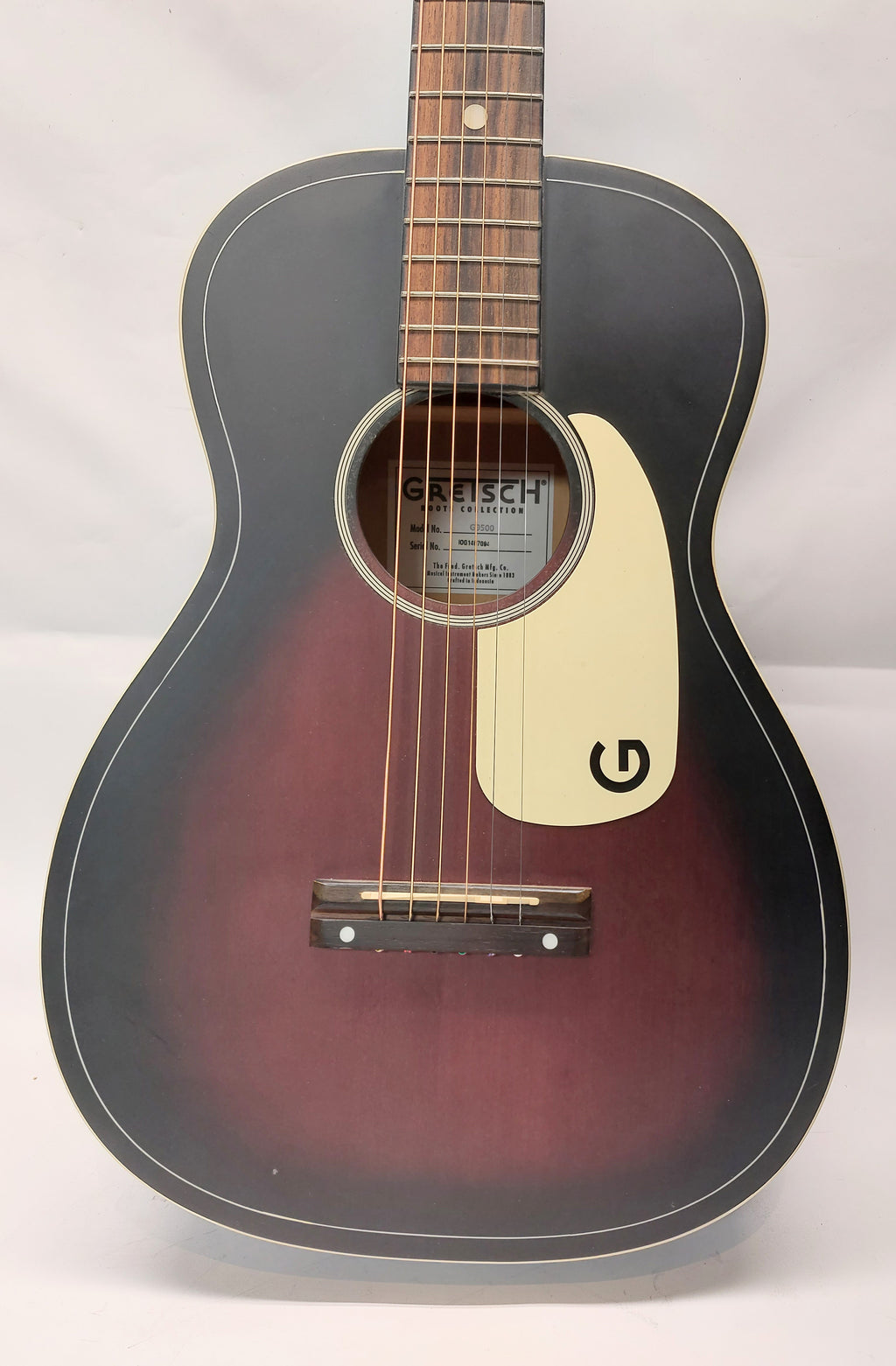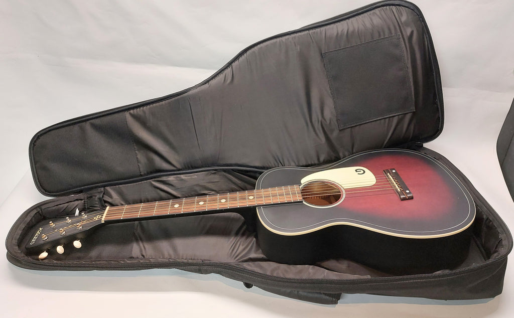 Le Gretsch - G9500 Jim Dandy Flat Top est une guitare acoustique de style parlour avec un corps en tilleul, une touche en noyer, un diapason de 24 pouces, et une finition « Sunburst » bicolore.