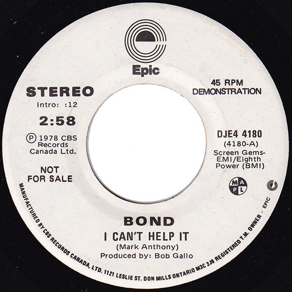 Bond (13) - I Cant Help It (stereo) / I Cant Help It (mono) (45-Tours Usagé)