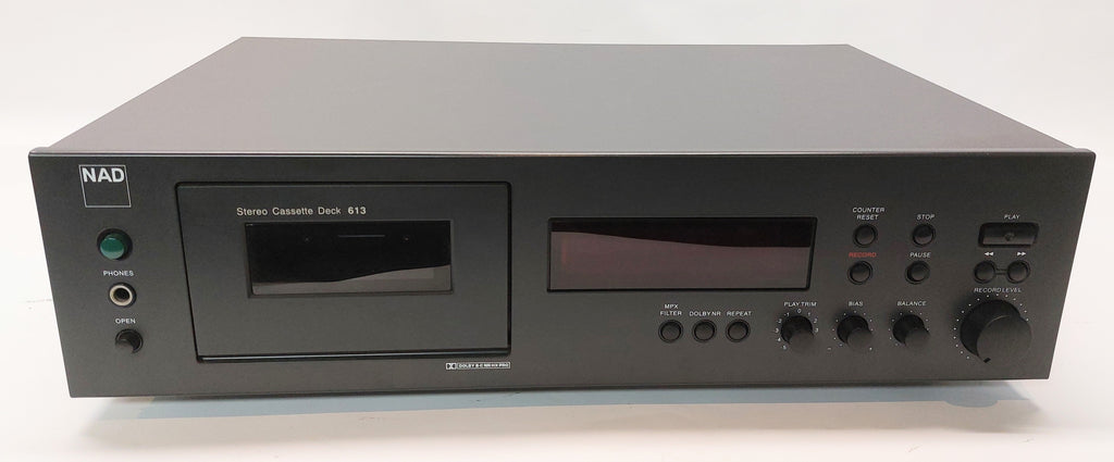 Le NAD - 613 est un lecteur de cassette stéréo à deux têtes avec réduction de bruit Dolby B/C/HX Pro, compatibilité des bandes : Type I (normale), CrO2, métal. Reconnu comme un équipement bien conçu et de qualité, avec de bonnes spécifications telles que 0.07% Wow/Flutter et 78dB S/N (Dolby C). Il a été introduit par NAD en 1997.